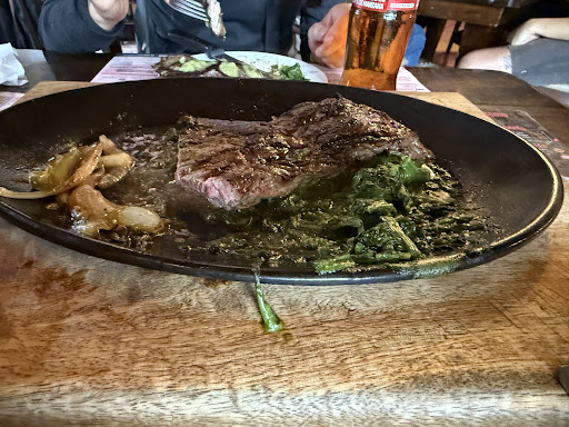 El show del plato hirviente: Me parece absurdo y desagradable que te sirvan un plato metálico caliente, seguramente eso les funciona con comensales que buscan diversión pero es totalmente innecesario para personas que queremos comer bien, el aceite brinca te quemas y se vuelve incómodo, pero me imagino que es para maquillar la pésima calidad de la carne (que no es ni la primera ni la segunda vez), yo preferiría que me sirvieran carne en el punto correcto en un plato y dejaran de hacer cositas curiosas que eran divertidas hace diez años.