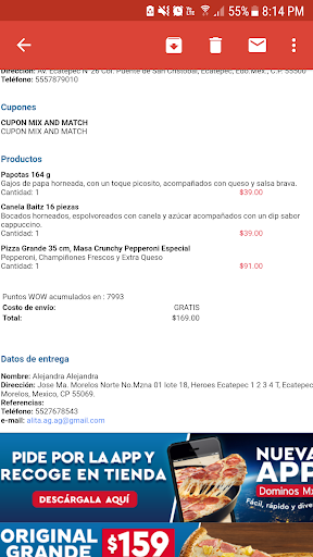 Read moreEL TIEMPO DE ESPERA REBASO LOS 30 MINUTOS Y NO SE RESPETO SU LEMA DE "30 MINUTOS DE ESPERA Y SERÁ GRATIS", AUN CUANDO NO NOS NEGAMOS A PAGAR LA ORDEN, YA NO QUISIERON DEJARLA, PÉSIMO SERVICIO AL CLIENTE, EL REPARTIDOR MUY GROSERO SE FUE Y NO DIO MAS EXPLICACIONES SI NO: "LA DIRECCIÓN ESTA MAL", SIN ENSEÑARNOS LA COMANDA DEL SERVICIO PEDIDO. PORQUE NO ESTABA MAL LA DIRECCIÓN. LA MOLESTIA ES POR EL MAL TRATO CON EL CLIENTE YA QUE AL MARCAR Y HABLAR CON LA "COORDINADORA", DIJO QUE NO PODÍA HACER NADA POR NOSOTROS, DE UNA MANERA TAJANTE Y MALA. NOSOTROS COMO EMPRESA QUE OFRECE SERVICIOS ES INDISPENSABLE TENER BUEN TRATO CON LOS CLIENTES Y ESTE FUE HORRENDO Y MALO. ES MUY TRISTE PORQUE GRACIAS A ESTE TRATO, UNO YA NO VOLVERÁ A ESTOS SERVICIOS. ¡¡¡¡¡MANITA...