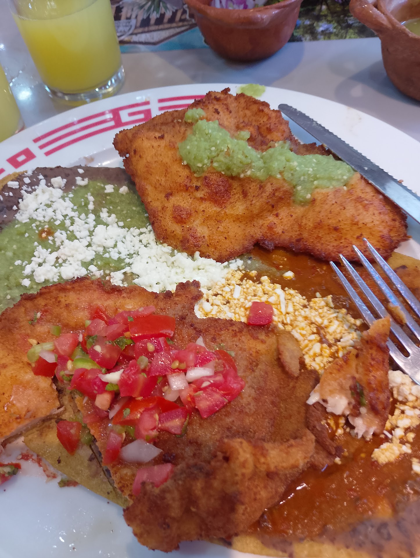 Read moreNunca había acudido pero leí reseñas de que fue de los primeros lugares en ofrecer paquetes y esperaba que cuando llegaramos nos hicieran la sugerencia. La señorita que atendió no nos mencionó la sopa del día o el sabor del agua no nos dijo nada de los paquetes. Revisamos la carta donde indica que puedes combinar cualquier comida con el paquete (incluye vaso de agua, sopa del día y café). La carta tiene dos precios el primero es si pides solo y el otro si pides en paquete. Decidimos pedir por separado ya que con el calor un vaso de agua no sería suficiente y tampoco queríamos café. Nos pusieron junto con los cubiertos un poco de totoposs, frijoles refritos y dos tipos de salsas . Una vez tomada la orden si se tardaron casi 30 minutos en servir 😔 así que si vas con hambre considera el tiempo. Pedí una milanesa de res con papas y ensalada la cual en la descripción decía que era con vinagreta de chile poblano asado y pues cuando sirvieron no traía nada de vinagreta 😳. Mi acompañante pidió enchiladas suizas gratinadas y me comentó que tenían buen sabor solo faltaba un poco más de salsa en el platillo. Pedí una limonada natural $55 pesos pero estaba muy dulce y no sabía a limón, la naranjada tiene mejor sabor. De postre unos mini churros que hacen al momento. En general el sabor me pareció bien, algo tardado el servicio y faltó más atención por parte del personal. Ya con propina pagamos 700 aproximadamente. Creo que hay mejores opciones por el precio...