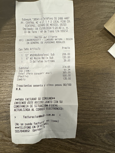 Read moreHorrible! Con ganas de ir y abentarselas en la cara, pedi a domicilio 2 subway una de atún y una de pollo pues creo que solo me mandaron el puro bolillo con 1 lechuga aventada 😠 de verdad nunca vuelvo a comprar ahi solo tire mi dinero a la basura y yo se que a la empresa ni le importa porque a final de cuentas siguen vendiendo pero por lo menos yo no vuelvo a comprar, es un robo por lo que te dan sin contar que cuando llegue a ir a comprar ahi te atienden de malas o no hay servicio apesar de que es buena hora y esta todo obscuro ya con esto ultimo ya fue la ultima vez que...