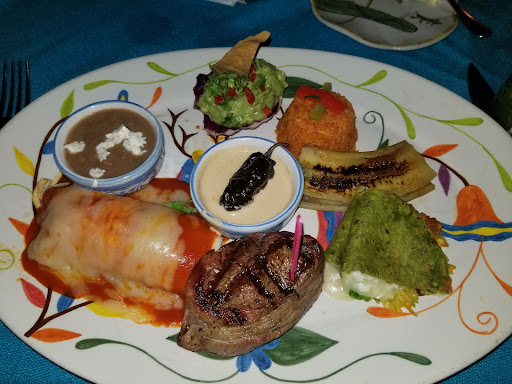 Highlights: Churros: best I've ever had! My whole family named this as our fave eats of our trip. Crispy on the outside, bit chewy on the inside, and just the right amount of cinnamon and sugar. Came with 3 sauces: chocolate, berry, and cream with nuts. Bonus the container they were standing Ho in it was in was an edible cookie dipped in chocolate and a side of tasty tiny chopped strawberries. 5 stars Wally's special: amazing seafood trip. Shrimp butterflied in their shells, lobster tail, and piece of sea bass. All were pure, fresh, and so delicious. There's melted butter and a spinach sauce as well. 5 stars Combo: chicken breast, cheese filled pepper, and steak my hub enjoyed. 4.5 stars Bananas foster: came with a fire show done table side. 4 stars Staff: Rigo, Saul, and Santiago were exceptional! Made our experience wonderful that evening. Super friendly, helpful, and on top of everything. Atmosphere magical colorful glass blown hearts hanging in a high gazebo like area in the middle of the open air restaurant.
