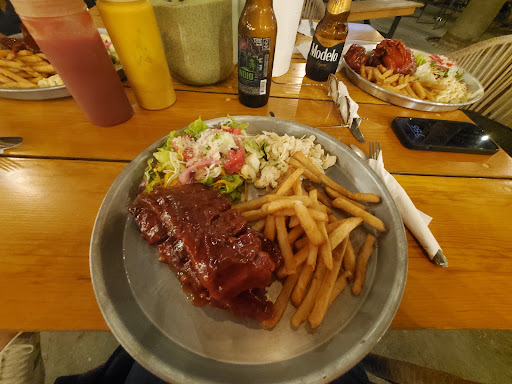 The only reason why I don't give a lower rate it's because the food was amazing!!! a shout out to the kitchen they do a great job everything it's on point I recommend 100% the BBQ ribs to die for, on the other side very downfall the service they didn't clean our table just wipe it with a paper towel not enough!! we were a party of four and the were pushing us to order when our fourth person was at the restroom not personal and also the young kid was giving looks like he wasn't happy at all to be there well we got it 👍 , and the worst and of top of all we decided to sit on the patio because when the band plays its hard to keep up a conversation and surprise!! A big table of 7 people all smokers sitting there why they are allowing this it's very annoying and also against the law in Mexico and don't even said that I don't related to this matter because shocking I'm a smoker but my friends are not and it's very very disrespectful to be smoking while everybody it's having a meal if they really want to make an space for smokers then get a smoking section patio area don't ruined for everyone else and yes I walk out and have a smoke no need to do this so sad that I recomend this place to my friends and they were second hand smoking the whole dinner so just to let u know don't sit outside if u don't want to be...