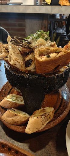 Best dish we ate were the beef tacos and seafood stew. Thought we would try something new and ordered the mocajete which appeared on the menu as a super sampler plate but were we wrong! It came out in a huge sizzling pestle overflowing with grilled octopus, shrimp, mini crabs, deep fried quesadilla and empanada all covered with cheese and soaking in some type of chili-seasoned oil. It looked amazing at first but once we started pulling it apart we quickly realized how much of the oil really soaked into everything which was really too much. The mini crabs were really only for show at there was barely any meat and the quesadilla and empanada were literally dripping in oil. About a third of the octopus was charred beyond edible. The shrimp was the best of this dish. Probably best for at least 4 people to eat it more quickly without the oil getting too soaked.
