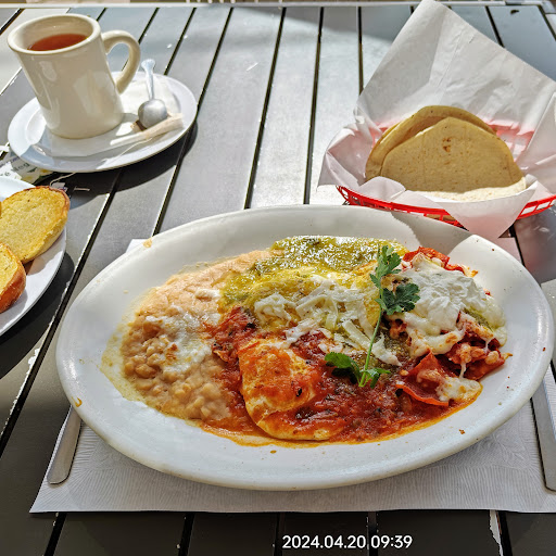 The homemade bread with their marmalade are what keeps us coming back. This place serves the best breakfast. Today we had huevos divorciados, machaca, chilaquiles con pollo and huevos estrellados con bacon. The bacon 🥓 was crunchy and perfectly prepared. We will definitely come back! Oh, the coffee and 🍊 orange juice are tasty. They have an outdoor sitting area in case you're traveling with your furry family. 😋