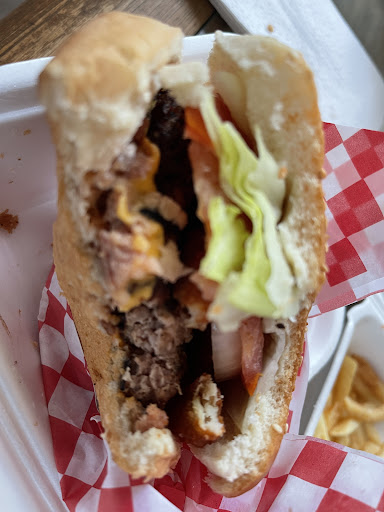 Read moreWe were not planning on going here for dinner. I like burgers, but my partner doesn’t. We just wanted to get something quick and close. She got the pineapple chicken burger and I got the Cowgirl. Both San came with fries. My burger was done perfectly. A really nice char with a little church. She wanted to try mine and loved it. She wants go back again to get her own. Her chicken was also excellent. Normally she never finishes her food, this time she had several bites of mine and finished hers. They had a musician playing and a trampoline outside for the children. This is our new favorite burger joint. Went back again, sane result, excellent. This place reminds of me of an...