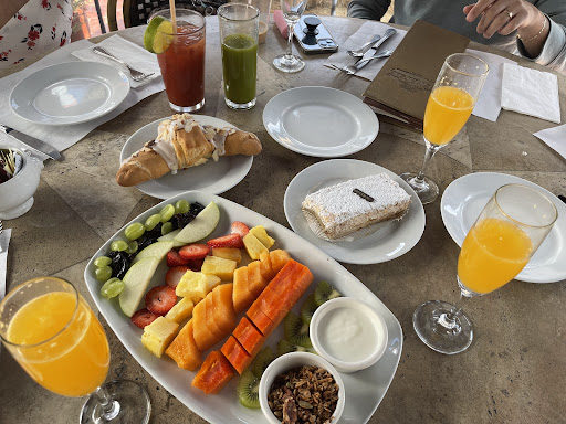 So we arrive, check in at 11:30 AM, and get a table about 12 PM. A very young waiter working the cafe stand took our drinks orders for a party of 6. We asked for 6 waters, 5 mimosas, 3 coffees, and 1 Bloody Mary - the kid stops us and says “let me check we’re still serving Bloody Mary’s”. So we think “cool they’re transitioning into lunch, totally understandable” - and for whatever reason the kid isn’t writing anything down… of course he forgets the water and coffee.