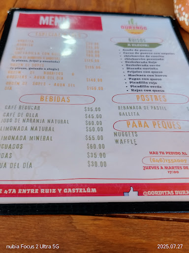 A los que extrañamos las gorditas de Durango, este es uno de los lugares con el sabor más acercado a los guisos de “Victoria de Durango”, he de decir que tiene sus puntos buenos y algunos no muy deseables, el tamaño es pequeño eso precio del doble al triple, eso sí, muy llenitas como deben de ser, la famosa de deshebrada la hacen en verde y rojo, pero ninguna es el clásico sabor buscado de Durango, el asado de puerco similar, el chicharrón prensado si es el mismo, y los otros guisos parecidos. De cualquier manera podrás disfrutar de unas gorditas hechas a mano, y hay otros platillos que próximamente probaré como el menudo, el pozole y no sé qué más hay y te diré mi opinión. Antes cobraban más por la de chicharrón prensado pero ya los igualaron, así sean de frijol , rajas o carne todas al día de hoy cuestan $35 pesitos mexicanos, agregue fotos del tamaño, el lugar es tranquilo y limpio, hace falta una pantalla. Y bajarle a su sonido ambiental, pero está bien en general, la horchata es rica. Hay estacionamiento en la puerta sin problema. Hay baños los cuales he olvidado asomarme para...