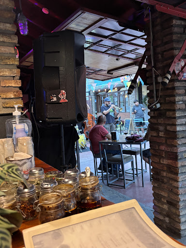 I enjoyed the jazz session and welcomed outdoor environment. My reason for my pizza at this location is that I like the thin crust, though I found it slightly greasy, maybe because I ordered just a slice instead of a whole cooked to order, for being my choices of meatless toppings. Enjoyed the friendliness of Natalie, Laura, and Jorge. It seemed to me on the Sunday I visited they may have been short of staff for the number of tables filled. The place was recommended to me by a friend due to the thin crust type sought after pizza and lovely ambiance. I will return on occasion with one...