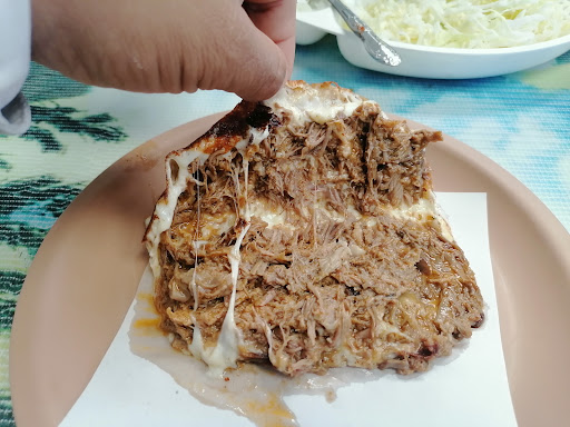 We ordered the Tatemada con Cama de Queso and Conchita Pibil. The Tatemada con Cama de Queso (we ordered beef) was slow roasted and tender, then fried on the griddle. It was crisp on the bottom and edges while staying soft and tender on the top. The whole platter was covered in melty cheese, grilled onions, and grilled chiles. This was a great dish.