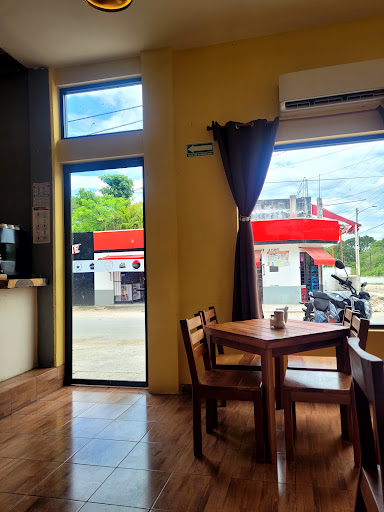 We were on our way from Tulum to Mahahual, on the long monotonous road. Around noon we felt like we need a coffee and a light lunch. We were actually hoping for a coffee bar as we are big coffee aficionados, and didn't really expect to find anything like it. To our great surprise we suddenly saw a coffee bar, when we had to slow down due to a 'tope' (speed bump).