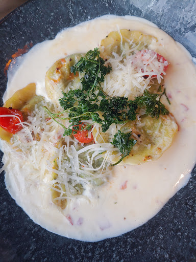 Read moreUn lugar en decoración muy agradable, con bastante espacio, me gustó saber que es petfriendly en la terraza de abajo. El área infantil me pareció bien aunque estaría padre que en fin de semana tuvieran niñera para que se aprovechara de mejor manera. En cuanto a los alimentos, solamente fuimos a almorzar pero ya era tarde así que fue el menú de comida. Pedimos unos camarones crispy que la verdad sabían más a pollo que a camarón y el capeado y la salsa me parecieron de un sabor extraño. Los rollitos de cangrejo estaban buenísimos y a muy buen precio. La pasta fue buena porción y estaba pasable. De tomar solamente jugo de naranja natural que estaba riquísimo y perrier que te sirven en unos bonitos vasos. El servicio de meseros en general atentos. Quizá no fueron las mejores opciones de platillos así que es probable que vuelva después a desayunar o a comer...