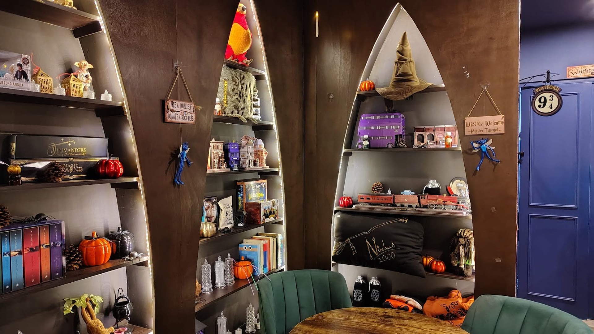 Read moreEl lugar es muy bonito pequeño Pero bonito cumple con el cometido entrar al mundo de Harry Potter los postres son deliciosos la verdad disfrute cada uno de sus postres por los precios es justo lo que esperas en la comida salada esa es otra experiencia no tan bonita pero el lugar es maravillo te dejan tomar fotos con las capas lentes te dejan leer los libros o tomar lo que gustes para interactuar con el lugar las cartas me encantaron tienen el pastel de Harry Potter de su primer cumpleaños es una verdadera belleza los nombres de cada uno de sus productos son creativos llamativos una locura mi experiencia fue linda aunque el lugar estaba vacío debió ser la hora en que llegué como a las una de la tarde Pero no me salí insatisfecho al contrario lo disfruté muchísimo aparte el ticket de la compra tiene un spit de despedida muy chido y los nombres de lo que consumiste tal como la carta sirve para el recuerdo y por ser mi primera vez me regalaron un...