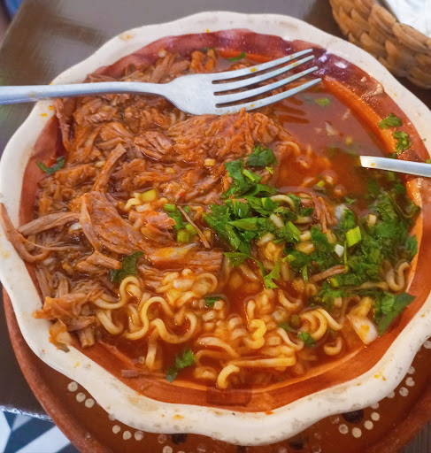 Domingo 10 de la mañana, vas caminando por la madero pasando el expiatorio, buscando un lugar para desayunar cuando volteas y ves un local acogedor y llamativo. Ingresamos y nos recibió una señorita muy amable, mesa al momento nos asigno. Nos ofreció la carta y atención pronta y solicita, quesadilla de birria, birria tatemada y tacos dorados con queso, café de olla y una limonada esa fue nuestra orden. Grata sorpresa ver que los platillo llegaron a la mesa en menos de 10 minutos ya estaba todo servido y grata fue nuestra sorpresa de las porciones bien servidas, platillo calientes y buena presentación. Vaya, en lo que respecta a sabor debo decir que en muchos restaurantes qué venden birria tienden a tener el consome desabrido y la birria seca, pero aquí fue la excepción, consome bien sazonado y consistente, la birria tatemada deliciosa es poco decir, para su servidor qué tiene buen diente la quesadilla y el plato de birria fue más que suficiente en porción pero no podíamos irnos sin un postre y un buen digestivo, el flan de la casa y las fresas con crema fueron la cereza del pastel, el flan exquisito con buena consistencia y tamaño para ser postre, las fresas con crema abundantes y quizá puede que no sean del gusto de todos ya qué son fresas congeladas con crema, a nosotros nos gustaron en verdad pero más vale aclarar, el carajillo sabe a lo que debe y con ello cerramos nuestra visita.