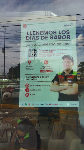 Read moreEs un restaurante inaccesible para personas con discapacidad en silla de ruedas, el estacionamiento no tiene piso firme, tiene tierra con grava suelta, donde esta la rampa de entrada para silla de ruedas esta hundido y se hanega la grava, se atasca la silla de ruedas, ya que uno logra pasar esa trampa de grava, en la mera puerta de acceso al restaurante hay una coladera corrida a todo lo ancho de la puerta, pero está también está hundida, de modo que la silla de ruedas se vuelve a atorar. Ya adentro del restaurante nos encontrábamos nosotros solos junto con los muchachos del servicio y el aire acondicionado lo tenían muy alto, parecía congelador el restaurante, pedimos que si le podían bajar un poco al aire y nos comentaron los jóvenes que nó, que porque eso lo controlaban por sistema y ellos no tenían acceso. De ahí en fuera, todo normal, la misma comida de siempre, los mismos servicios, los baños un poco sucios, haaaaa! y los postres muy raquíticos, pedimos un sundae y estaba más grande el vaso que la cantidad de nieve, le dije al muchacho que nos sirvió el helado y dijo que así era para poderle poner los topics que llevaba encima y no se cayeran, siendo que la foto promocional que había en cada mesa del restaurante, en cada poster de las paredes y en las pantallas arriba de las cajas, era mucho más grande y mucho...