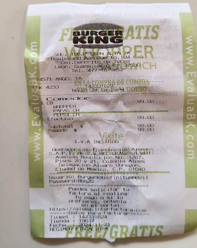 Read moreLa verdad el Peor Burger King en el que he comprado. La máquina de gaseosas no tenía Hielo, de todos los sabores del dispensador de refresco, solo había Pepsi y Mirinda, le comenté a la Señorita de mostrador y me dice de mala forma "Ya no hay, es por la hora señor", por Dios, entonces cierra sí es tarde. Mi hamburguesa que decir, una de "La esquina" estaría mejor, fria, el pan húmedo, las papas fritas frías, le pedí Mostaza y igual las cosas de Malas, literal se veía que ya se querían ir. Señoritas hay un Horario, si está abierto es por que tienen servicio, y debe ser al 100%, por qué así tal cual me cobraron la hamburguesa. La verdad si no era por qué esperé y tenía hambre, se las hubiera dejado en...