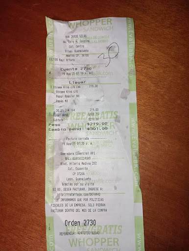 Read moreHace unos meses me encantó que Burger King central en Silao, tuviera la Hamburguesa Vegetal, pues soy vegetariana hace años no iba a un Burger King,todo iba bien, hasta que un día volví a ir, y pedí la Hamburguesa vegetal, pero me dijeron que allí nunca la han tenido, como que no tenía bien la info la chica o no sé qué pasó, yo le dije que si la tenían, pues anteriormente me la habían dado, pues la señorita que me la negó, le preguntó algo al muchacho al oído, y medios molestos me la dieron, posteriormente volví a ir, y pedirla, y me volvieron a decir que nunca la han tenido, y le dije que volviera a preguntar que si la han tenido, igual sucedió, le dijo al oído, pero esta vez me la negaron, el muchacho hasta una risita se le salió, la última vez que fui, y volví a pedirla me dijeron que la habían descontinuado, pero en Guanajuato capital en todos los Burger King y en León, no la han descontinuado, ósea los Burger King la tienen. Pienso que es más bien no querer brindar atención, más bien no es Burger King, sino es al gusto de las personas que están allí, se perdieron estas novedades de...