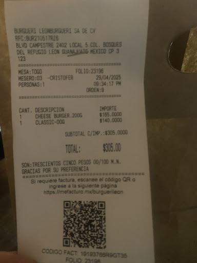 Read moreBueno, pedí para llevar porque estoy en horario de trabajo, tiempo de espera, no sé 🤣creo 10 minutos, estaba poco concurrido, tuve mis dudas, acabo de terminar mi provolone Burger, y solo puedo decir que volveré a probar otra hamburguesa, muy rica, el queso delicioso, y pues si, creo q si podemos decir son hamburguesas premium, la verdad soy mas de tacos pero afortunadamente no quería alejarme mucho de mi área de trabajo. Recomendado. Y saludos al personal, muy atento. No tengo fotos ya me termine...