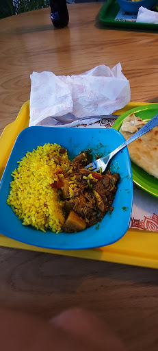 La barra de alimentos tiene opciones para elegir, yo probé el pollo en salsa con mantequilla acompañado de arroz con azafrán y una combinación de papa, ejotes y coliflor con una salsa picosa muy rica.