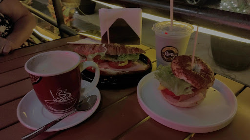 Fuimos un sábado por la noche no había muchos clientes Al ordenar los alimentos tardaron mucho en servirse, pero si fueron de mi agrado La bebida -naranjada - no la volvería a pedir, sabía a puro jarabe A mí esposa si le gusto si café y su bagel Yo pedí un croissant americano y muy bueno solo un poco quemado de la tapa del pan.