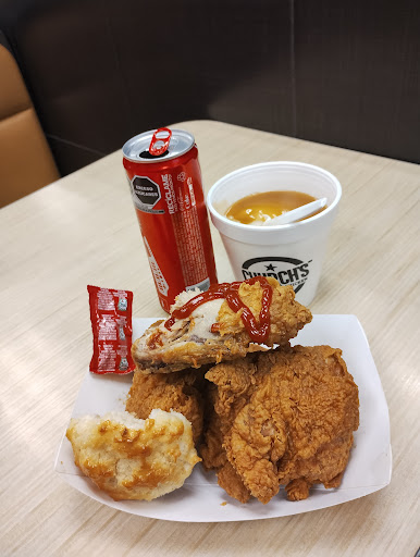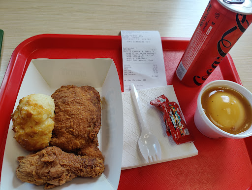 Read moreExcelente pollo frito!!! Mucho mejor que el de KFC, ya que el pollo es más grande, el empanizado es más crujiente y agarra mucho menos aceite entre el pan y el pollo evitando esa desagradable mordida dónde te escurre todo el aceite tan desagradable, también me percate que el pollo es realmente fresco y no congelado, así como el puré de papa es más grande la porción y su salsa es mucho más agradable al paladar, también les recomiendo muchisisisimo los biskets, estos son diferentes, un poco menos grande pero por dentro están suaves, calientitos, la parte súperior es dorada con un toque dulce dorado muy exquisito, en pocas palabras, mayor calidad y menor precio, solo manejan dos términos, son crujientes, uno en sabor original y otro picoso (a mí me fascinó el picoso ya que es muy agradable y no dejas nada en la mesa)