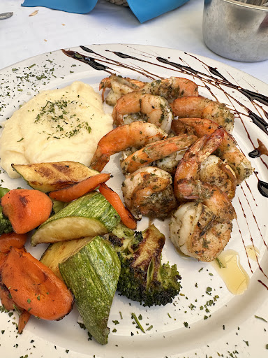 A very quiet place, not far away from centro, where you’ll least expect to way so well. The food was delicious, some better than others but still délicious. Highly recommend the seafood soup, an explosion of flavors, The platter of fried calamari was amazing as well. The grilled shrimp was good, The pizza was ginormous unfortunately we were already too full to enjoy it. The espresso, panacota and tiramisu were out of this world.