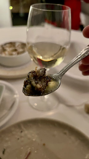 The food was superb. We started with Pulpo (octopus) appetizer. Diced tender octopus in a sea salty broth of green herbs and butter served with crostinis. This was likely the most delicious octopus dish I have ever had.