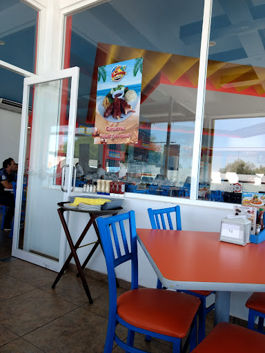 Fuimos en sábado, alrededor de las 4-5pm. La comida: pedimos unas alitas bbq, la salsa muy sabrosa, la orden decía que eran 8 piezas pero sólo trajeron 7 argumentando que se les habían terminado, pero esto después de nosotros haber preguntado, pedimos también un plato que ellos llaman mariscada caliente en la cual incluye camarones empanizados de coco, estaban tiesos por que estaban sobrecocidos, traía camarones rellenos regulares, pescado empanizados buenos, papas fritas, chile guero, ensalda, tacos de pescado con queso, ricos, en general la comida buena, pero no sobresaliente, y viniendo incompletos, los cobraron igual, TACHE, pedimos de beber limonada, buena. El volumen de las televisiones está muy fuerte, a los baños les falta higiene, los botes se desbordaban de papeles, las puertas sin seguro, y baños sucios, entiendo que hay gente muy sucia que no tiene reglas de urbanidad, pero el establecimiento debe de estar al pendiente, es una lástima porque el lugar en si es agradable, el personal que nos atendió también, sobresaliente la Hostess. El servicio fue rápido, eso es bueno, pero pues tendrían también que darte oportunidad de leer la carta, no puedes pedir enseguida de tu llegada, sobre todo si es la primera vez que vas. Precios elevados. Fuimos para conocerlo, pero hasta ahí, no se volvió de nuestros preferidos, no regresariamos. Lo recomendaría, con reservas, pudo ser que en nuestra visita, no era...