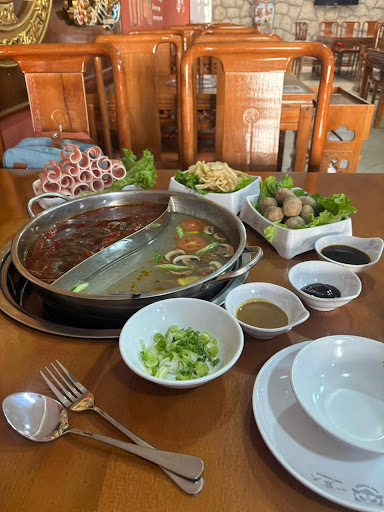 Genial lugar! Muy recomendado para ir en familiar y así probar una gran variedad platos, además así se acostumbra a comer en los restaurantes chinos reales con comida suntuosa y variada. Me en canto el Hot Pot! Con una sopa o caldo rojo con sabores fuertes y complejos, con un agradable y fuerte picante con el frescor de la pimienta Sichuan y una sopa o caldo blanco con sabores más suaves y ligeros que contrarrestar los sabores fuertes del rojo para así no saturar el paladar. Acompañado con las proteínas de tu preferencia, especial mención a las láminas de cordero y a los trozos de Sapo toro. El cordero tenía un sabor profundo que podías saborear con la sopa blanca y que aumentaba con la sopa roja que le aportaba más complejidad. La carne de Sapo tenía un sabor ligero y a la vez salvaje, es decir no se sentía tan claro como la carne de pollo o fuerte como la res, se acercaba más a la carne de pescado pero menos fuerte. Por otro lado las albóndigas de pescado eran suaves y podías obtener diferentes notas de sabor dependiendo de la sopa, un sabor impactante o más ligero. Los fideos y el tofu estaban deliciosas, le aportaban más textura y peso a las sopas. Por otro lado, los de más platillos como el arroz frito y los fideos eran de sabores complejos y profundos, mucho sabor, no saturada tu paladar y querías seguir comiendo. Las verduras salteadas y la panceta de cerdo fueron muy buenos para abrir boca o para limpiar el paladar con sabores salados y suaves. El mapo tofu era dulce, suave, con una textura como a flan pero esperaba algo más fuerte profundo con mayor picor. Las bolas de arroz fritas rellenas de taro eran crujientes por fuera y suaves y cremosos por dentro, con dulzor ligero y agradable para acompañar con café o té. Recomiendo las bebidas de...
