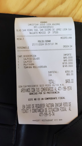 Read moreLos martes hay promocion de 2*1 Los calpicos de sabores muy ricos De los 4 sushis que probamos el mejor fue el de tempura rollo ese si muy recomendable. Otros Dos regulares y otro bueno a secas. Los precios de los rollos son alrededor de $150mx. Si recomiendo el lugar pero los días de promociones, pues los sushis no...