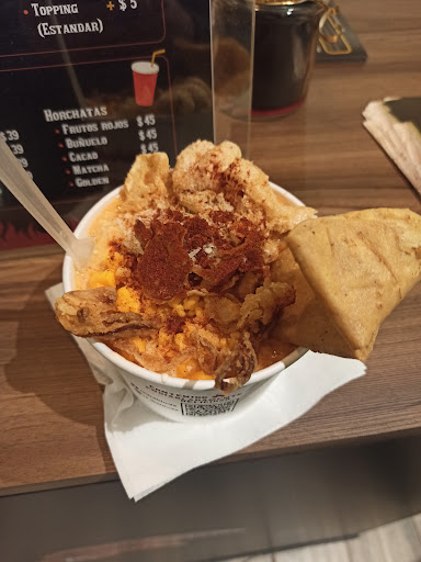 Read moreUna grata sorpresa y alternativa fresca a las clásicas opciones de botana o cena informal. Por partes, el local es pequeño pero limpísimo, decorado con motivos tradicionales, mucho orden y bien iluminado. Servicio muy amable, atento y rápido por parte de todos. Las opciones de salsas, toppings, aderezos, complementos y quesos para tus esquites son muchas, todas deliciosas, será difícil quedarte sin nuevas opciones para probar. El precio es un poco alto, pero no es cualquier esquitería, apunta a un mercado que pide algo diferente y de mucha calidad....