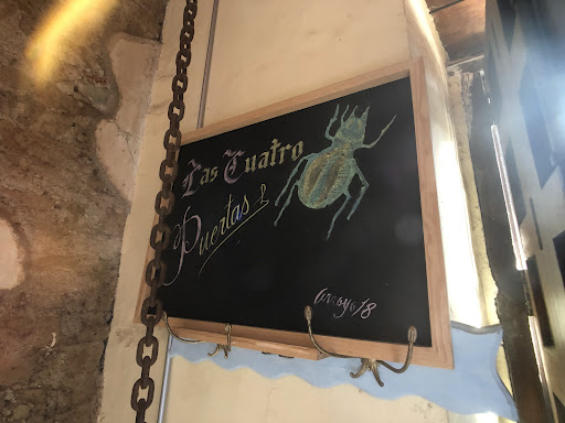 Read moreI would really really love to enjoy this place. We've been here 3 times now but every time there was something bad. The first time they burned the pizza, the second time the pasta was raw, and we thought "Just a small mistake, for sure it will be better the next time." The taste of the food was not bad after all... Yesterday we went again. The chicken in the pasta pesto was raw. But most importantly: There was a feather (!!!) in the pasta! Now, I'm not an expert nor a chef, but I'm pretty sure that feathers have no business being in a kitchen, even less so in a dish. How, Cuatro Puertas? You could be the most amazing place! We're unfortunately not coming back, even though the drinks...