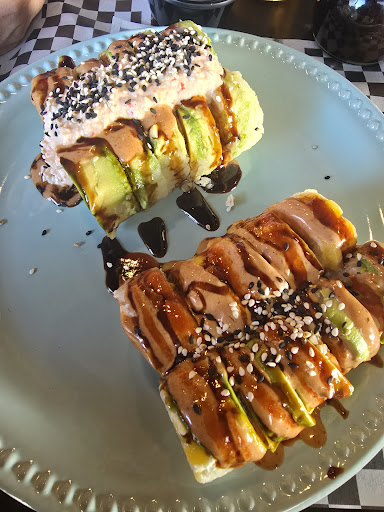 El servicio a domicilio está barato,bonito y bueno,tiene trozos un poco delgados de salmón,pero está muy bien por el precio ($124,en total con descuento y envio) pedi el sushi arcoiris y estaba súper deli 😽,no eh ido personalmente al local pero me encantaria ir,talvez si voy me sirvan trozos de salmon más gruesos 🤭,no importa si me cobran más como $250la vdd estaria bien o $270 el precio,en conclusion el pedido a domicilio lo super recomiendo,yo lo pedi por didi,muchas gracias a este establecimiento por la comida tan deli y a didi por su servicio rapido,y ademas no tardo mucho el sushi y eso que ya eran las 8:40. EN CONCLUSIÓN HORA SI JAJAJA,ESTA BUENO, BONITO, BARATO Y ES RÁPIDO...