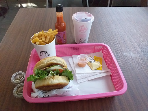 El nuevo lugar de hamburguesas, con un estilo sencillo pero igual novedoso, es un lugar pequeño donde a lo mucho caben unas 30 personas sentadas. Si acudes con personas mayores y no hay mesa libre sí sería un problema.