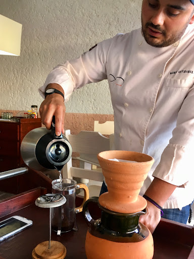 A Google search for a restaurant in Dolores Hidalgo brought up D’ Capricho, so we stopped in to check it out. The chef came out to tell us about his menu - all looking quite interesting and we decided to stay. It turns out Chef Mario Gutiérrez is passionate about the food he prepares, and the resulting meal was the proof. Everything we ordered was inspired and beautifully presented. Interesting combinations and delicious flavors. So good we are determined to return soon for more! The amuse bouche of avocado with green salsa really did get our appetite up for the next course of tomato soup flavored with a hint of chili, olive oil and sherry - both excellent! The soup was so good, even one with a tomato soup aversion really enjoyed it! The next course was a light rice salad with diced vegetables followed by the entrees. We each ordered different dishes; the pork chop with pork belly, the beef steak with picante sauce, the vegetable and beef lasagna and stacked tortilla and chicken in green sauce. We agreed the lasagna and the pork chop were our favorites. We had to know what desserts Chef Mario had created, all sounded good, so we tried all three and were not disappointed: a sweet tamale filled with cheese, traditional corn cake, and a four cheesecake with crumb topping. Finished with coffee two ways. He wanted to show us how brewing French press coffee compared to filtered drip using optimum brewing times and temperatures resulted in slightly different qualities. You will have to try this demonstration and see for yourself which you prefer! If you happen to be in the town of Dolores Hidalgo, a day trip from Centro Guanajuato visiting or checking out the ceramic factories there, be sure to stop in for a memorable meal prepared by a chef passionate about the food he prepares. You...
