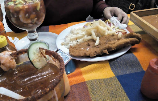 Read moreAmplio lugar de comida de mariscos, aunque también para los amantes de la carne hay un par de opciones, además ¡tiene menú para niños! Los platillos vastos, coloquialmente se diría "muy bien servidos"... Comí un molcajete y fue suficiente... Hay todo tipo de bebidas para acompañar los platillos, desde las muy solicitada cerveza... El servicio fue ágil para tomar las ordenes y entrega de los platillos... El lugar es abierto (sin puertas ni ventanas) de alto techo con muros pintados con detalles marinos... Puede ser un punto para comidas de trabajo, familiar,...