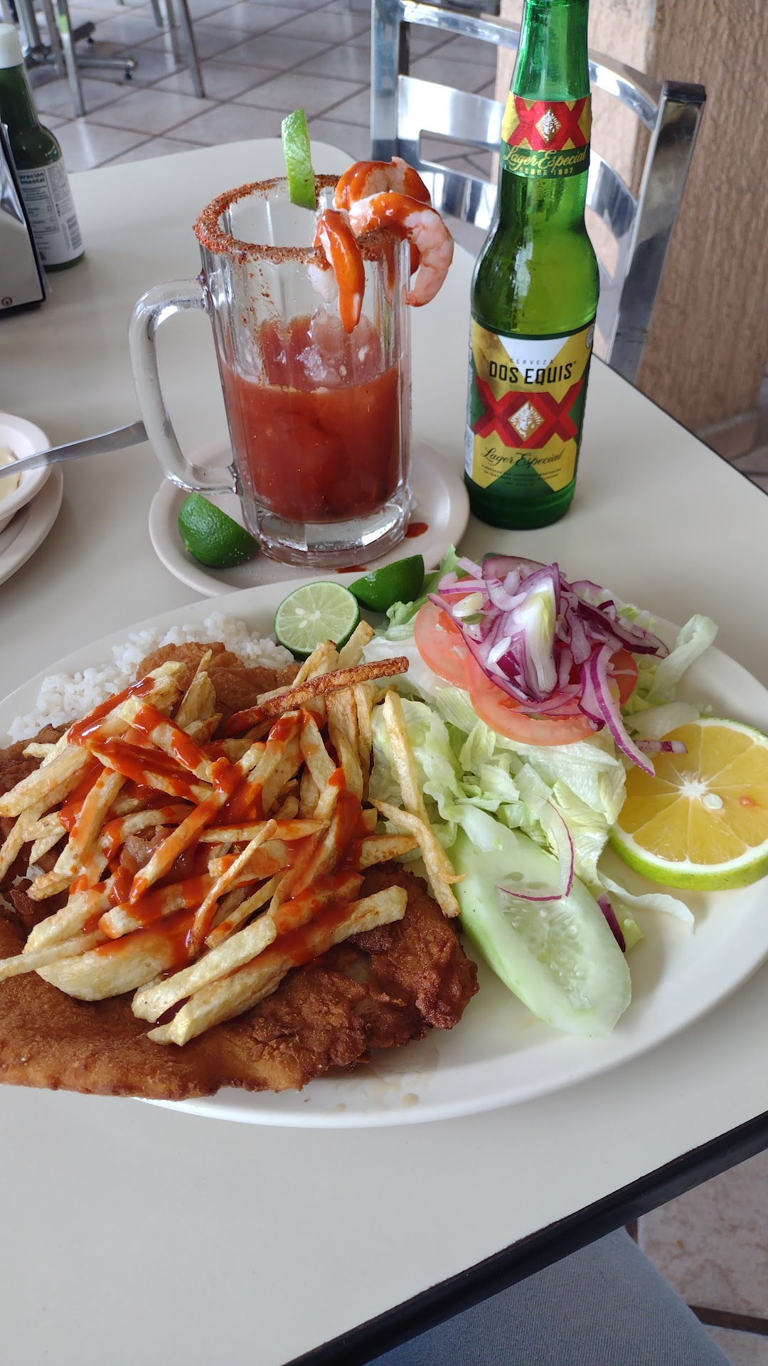 Read moreMe gustó, el tamaño de los camarones está bien, la orden de papas aunque es muy cara son bastantes, el pescado en salsa de cilantro está delicioso, los precios en general son altos, pero es bien sabido que comer mariscos siempre implica gastar un poco más. Aquí lo que probé estuvo muy bueno, la atención que tuve de uno de los meseros fue excelente, inclusive a la salida todos se despiden agradeciendo la visita. No pude verificar si a un costado existe estacionamiento, en una próxima visita lo actualizo. Definitivamente lo recomiendo ampliamente y regresaré a probar...