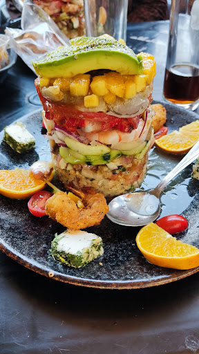 Read moreFuimos con mucha expectativa, el servicio me pareció aceptable, esperas 30/40 minutos por un platillo como los camarones almendrados que por cierto son muy malos, sin sazón, el arroz de microondas seco y salado, los camarones saben a eso, a camarones y ya, fritos con lajas de almendra que pierden todo el chiste en la freidora que los deja tiesos, un poco de betabel, o no se que cosa encostrada en el fondo del plato intentando ser una salsa de algo. Que ni decora, ni sabe. Los vegetales con buena cocción, pero nomás así. Los aderezos: un aurora y uno de soja con miel que no se que hacía ahí. No vale lo que vale. El molcajete mar y tierra no tiene nada de especial, pero si es basto y trae un buen de camarones, llega caliente y con una salsita insípida. Para Comer mariscos no sería mi primera opción , los carajillos son buenos, pero todo sabe a copia de algún lugar y no lo logra del todo. También se inundó cuando llovió,y nos apresuraron la cuenta por qué se fue la luz, los baños se...