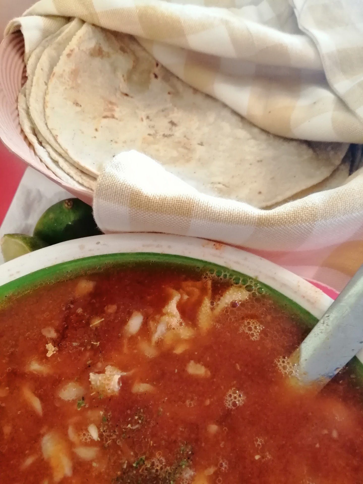 Un menudo sabroso con sabor, el caldito con los grumitos de la pancita que lo hacen espesito con la especia dem chilito con que se guisó. Los callos y pancitas muy suavecitos y la comida con mucho sabor. Se sirve con tortillas echadas orégano, limoncito, cebollita y chilitos de árbol. Se recomienda ir temprano pues el menudo es más sabroso y consistente, pues se nota que no ha sido rebajado y re hervido. Se pueden compar docenas de tortilla extra y si a algún acompañante no le gusta el menudo puede pedir quesadillas. Esta entre varias calles donde se puede estacionar ya que no cuenta con estacionamiento propio y esta ubicado en zona residencial. Se puede pedir para llevar llevando su propio traste o de los que tienen...
