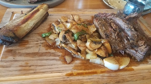COSTILLA DE RES... $1000 kilo. pedí 500 gramos. y que no tuviera tanta grasa... Me la sirvieron de CAMPEONATO. cebolla chile y champiñon sarteneados... deliciosa.. limpia y un manjar.. dejo a la picaña en la mesa..