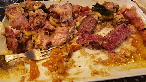 Read moreSteaks – 4/5 Mid-to-low choice grade, decent but not premium. Lightly seasoned and grilled. I always ask for medium-rare, which usually works out, because its serve it on a hot skillet.
