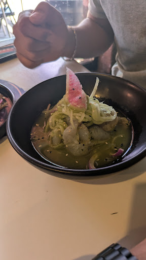 Bueno en realidad iba con una buena espectativa del lugar íbamos camino a comer tacos de pescado en otro lugar pero al estar cerca decidimos probarlo. Èramos 3 personas, pedimos cada unoun taco, mi amigos de camarón y yo de pescado, además de 2 aguachiles, uno negro y otro verde, de bebida pedimos 3 caguamas pacifico por qué con el calor se antojaba. Para empezar con los tacos creo que no son malos el de camarón estuvo bien, pero el de pescado estaba insípido y el aderezo de chipotle clásico de esos tacos tampoco tenía sabor, en general no están malos pero por 75 pesos esperaba algo mejor. En cuanto a los aguachiles, creo que puedo decir con seguridad que es de lo peor que he comido en general en ambos el camarón estaba pasado y se sentía chicloso el pepino lo agregan en tiras por lo que no tiene crunch ni textura, en cuanto a las salsas de lo peor, la verde tenía apenas un poco de sabor a limón y no estoy seguro de que tuviera chile pero lo que si había y de sobra era tomate verde o tomatillo imagino que para hacer rendir la salsa pero nunca en la vida había probado una salsa verde de aguachile así de mala y en cuanto al aguachile negro no tenía nada de limón, solo un ligero sabor a jugo Maggi y la consistencia del aceite de oliva que no ayudaba en nada. Definitivamente nunca recomendaría sus aguachiles ya que el sabor es malísimo, el camarón no está fresco y el costo era alto, 159 una tostada y la porción no era nada generosa. En cuanto a la cerveza si estaba fría pero fueron 150 de cada caguama lo cual se me hizo una exageración ya que ni siquiera era familiar. En general el lugar es una decepción ya que el ambiente no está bueno, y los precios son muy elevados, por 3 personas fueron cerca de 1000 pesos y creo que por ese precio hay mejores sitios, el servicio si fue bueno incluso al final nos llevaron una cortesía de caldo de camarón que estaba regular pero se agradece ya que no no lo habían llevado por qué al inicio aún no lo tenian listo. Creo que tiene una promo de buffet de tacos los martes por solo 169 pero solo aplica en los de pescado, en general los únicos buenos en mi opinión son los de camarón por lo cual creo que no...