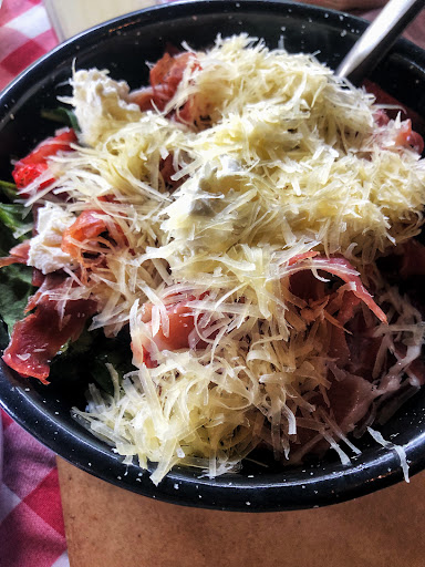 Es un lugar grande en su cocina y excelente horno así como el personal. Excelente servicio. Dos grandes plantas al entrar pero en nada amortiguan el calor en el limitado espacio para el comensal. Ni un solo ventilador en el espacio semi-abierto, con muebles de madera pesadas y resistentes sillas. El horno es el que manda en el lugar. Excelentes pastas, ensaladas y deliciosas pizzas con combinaciones del lugar como: aceitunas negras, palmito y champiñones. Así como ensaladas con frutos rojos frescos. No alcance a probar postres pero los vi pasar como una hermosa tentación. Buen lugar para regresar por un ...