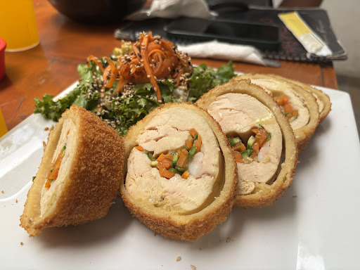 El rahmen está rico, bien condimentado aunque la porción es mediana y servirlo en un plato de plástico lo degrada un poco, los makis son de buen tamaño sin destacar algo extraordinario. Lo que fue una sorpresa fue la pechuga de pollo empanizada, enorme y con una costra muy rica.