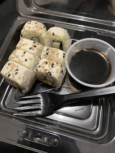 Read morePrimero que nada, la cajera con una jeta que da a entender que ni quiere trabajar y que la estas hartando con tu presencia no tomó bien la orden y puso los rollos que se le hincharon los ovarios, cosa que no me di cuenta hasta llegar a casa, segunda, los rollos son EXTREMADAMENTE pequeños, no los aprietan bien y por ende se deshacen casi casi al tocarlos, ni siquiera cortan el rollo bien y se quedan pegados entre si, el yakimeshi tenía un sabor muy potente a ajo y para colmo ni ponen palillos en la caja. Realmente es lamentable y dá lastima la comida de este lugar Es muchisimo mas preferible ir al Ksushi que está al otro lado de la zona de comida, sale un poco más caro, pero mínimo...