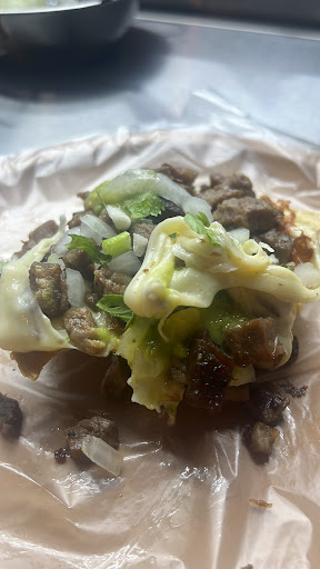 Read moreEs un puesto de una carrito sobre la banqueta, y las personas comen sobre la calle y la banqueta, como cualquier taquería promedio. No tienen precios exhibidos a la vista, ni te proporcionan los precios, y evitan hacerlo. Simplemente llegas y te toman el pedido sin explicar nada. Pedí tacos de cabeza y tripa, estaban sumamente normales, y hasta simples, sin chiste, sin vedura. Dos aguas, y la cuenta estuvo totalmente discrepante con el servicio y producto ofrecido. $50 pesos cada taco de cabeza y tripa, de un tamaño normal, con una porción de carne discrepante al precio, un vasito de agua $50 pesos y el litro como $90. Excesivamente caro, pagué arriba de $1,000 por unos tristes taquitos en la calle, que no valen lo que cuestan. Jamás regresaría, fue muy...
