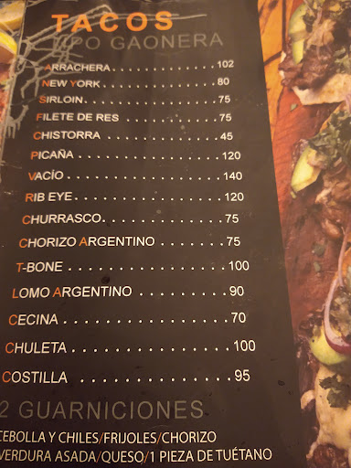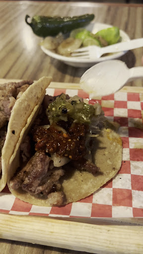 Read moreBuscando un lugar para cenar nos topamos con este establecimiento que parecía muy prometedor, no sé si era por la hora, pero nuestra experiencia no fue muy buena, llegamos como a las 10:30pm, nos asignaron mesa y nos dispusimos a pedir, lo atractivo del lugar eran los cortes, pero para nuestra sorpresa no los había, solamente tenían tacos... para tomar, aunque la carta mostraba varias opciones, solo tenían refrescos...en fin...ordenamos los que había, los tacos son un poco caros, pero tienen buen sabor y buena cantidad de carne, tienen variedad de salsas y la cereza del pastel fue el postre que brillo por su ausencia...tampoco tenían, en resumen, la comida es buena pero el servicio dejo mucho que desear, por lo menos de noche, sería bueno ver si por la mañana-tarde el servicio es mejor y tienen disponible todo lo que...