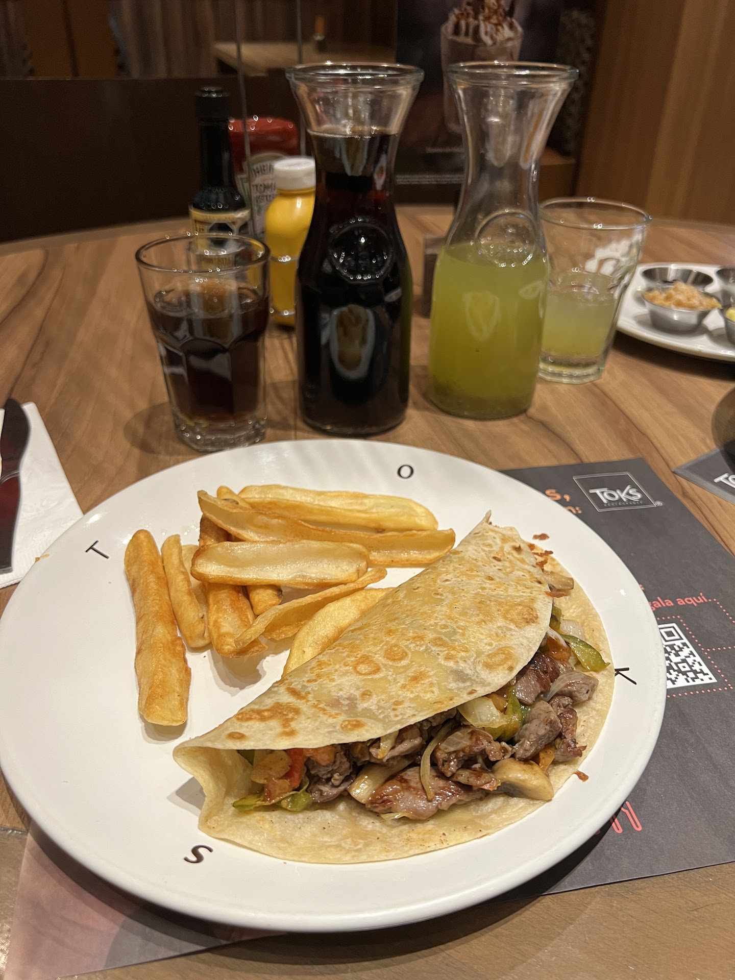 There is a charge for parking of 20 pesos for two hours but is big and save, it is a family restaurant with a menu for kids and there is a playground for kids, it is good located and it's accesible and easy to get there, about the portions are small and it could be expensive if you want yo eat a lot or you are starving, the service is slow so you must be patient It is the best place If you want to drink coffee, it is a good restaurant if you are in the south of the city, there is breakfast to dinner, closed at 11:00 and...