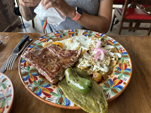 Mi calificación es: Lugar: 7/10 si bien tiene vista bonita y es un nuevo restaurante con todo lo que implica, se queda corto. Atención: 7/10 a pesar que no nos trataron mal, falta cortesía y amabilidad, ya que el mesero nos atendió de manera escueta y nos llevo servicio a destiempo. Tiempo de espera: 9/10 es lo más rescatable de todo. Esperamos un tiempo razonable para los alimentos. Limpieza: 8/10 Sanitarios: 8/10 Menu: 8/10 es poco variado. Presentación: 8/10 Comida: 0/10 tenía buen aspecto y sabor aceptable, nada fuera de lo común, PERO NOS HICIERON DAÑO LOS CHILAQUILES! Calidad/precio: 0/10
