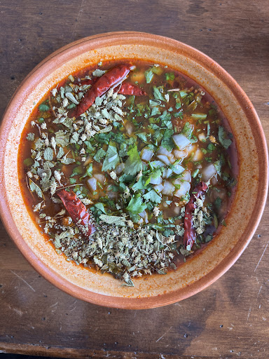 The red sauce is their “Diablo” that goes with doem of their foods. Had to try it with some tortilla chips. Nice kick...