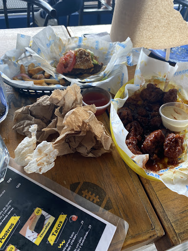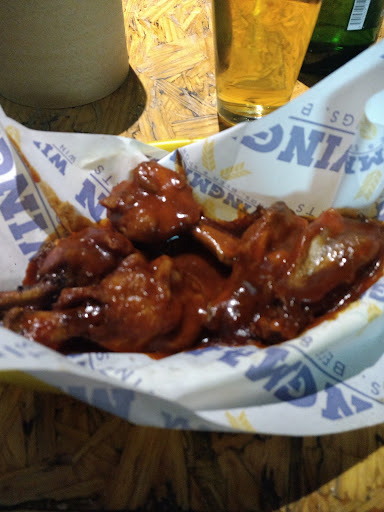 El lugar esta muy bien ubicado justo atrás de Costco de centro max. Viene a la promo de todo lo que te puedas comer por $99. Pero exigue una compra de un side. El mas barato son gajos de $39. Los gajos de hecho son muy buenos. Solo te dan incrementos de 5 alas y un solo sabor. El tamaño de las alas que me tocaron fueron gigantes casi una pierna de pollo. Solo me dieron drums y no flats. Pero la cantidad de salsa es una exageración mis alas parecían enmoladas. Sugiero que usen menos salsa dos tercios menos. En si esta esa razon de mis 3 estrellas. Vine por alas y no se me hicieron buenas por la exageración de salsa. El tamaño esta perfecto de hecho me comi 15 y quede super lleno. Esas mismas 15 cuestan 109 todos los dias. Me gustó el hecho de la venta de caguama. Este lugar tiene el potencial de ser el.mejor de alas en León por su atención y precio. Solo...